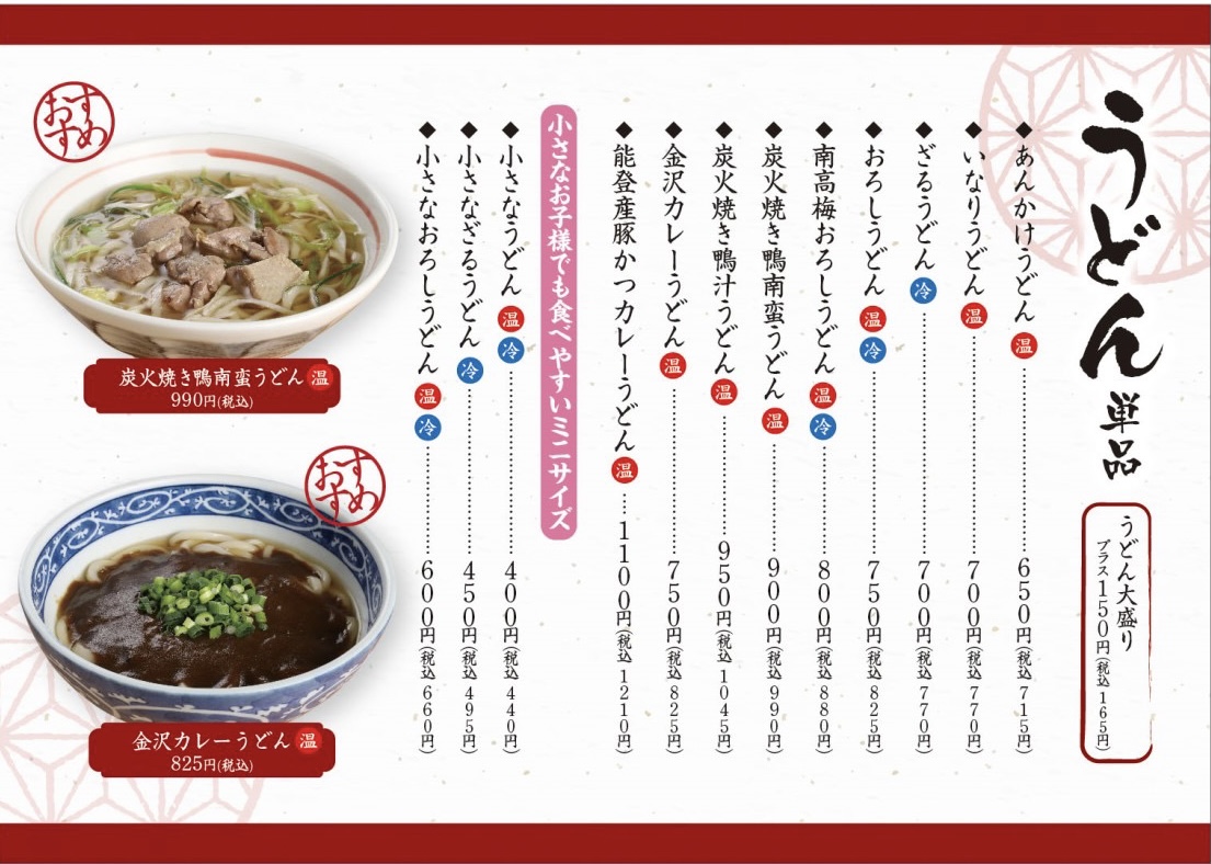 The menu at Otahuku Nakabashi offers a focused selection of comforting udon dishes centered around rich, handcrafted broths and seasonal ingredients. The style is straightforward and homey, inviting diners to enjoy satisfying bowls in a relaxed setting near Kanazawa’s JR station.